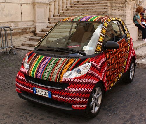 A knitted car cosy from 2009... looks like it has been done inside as well as outside!!